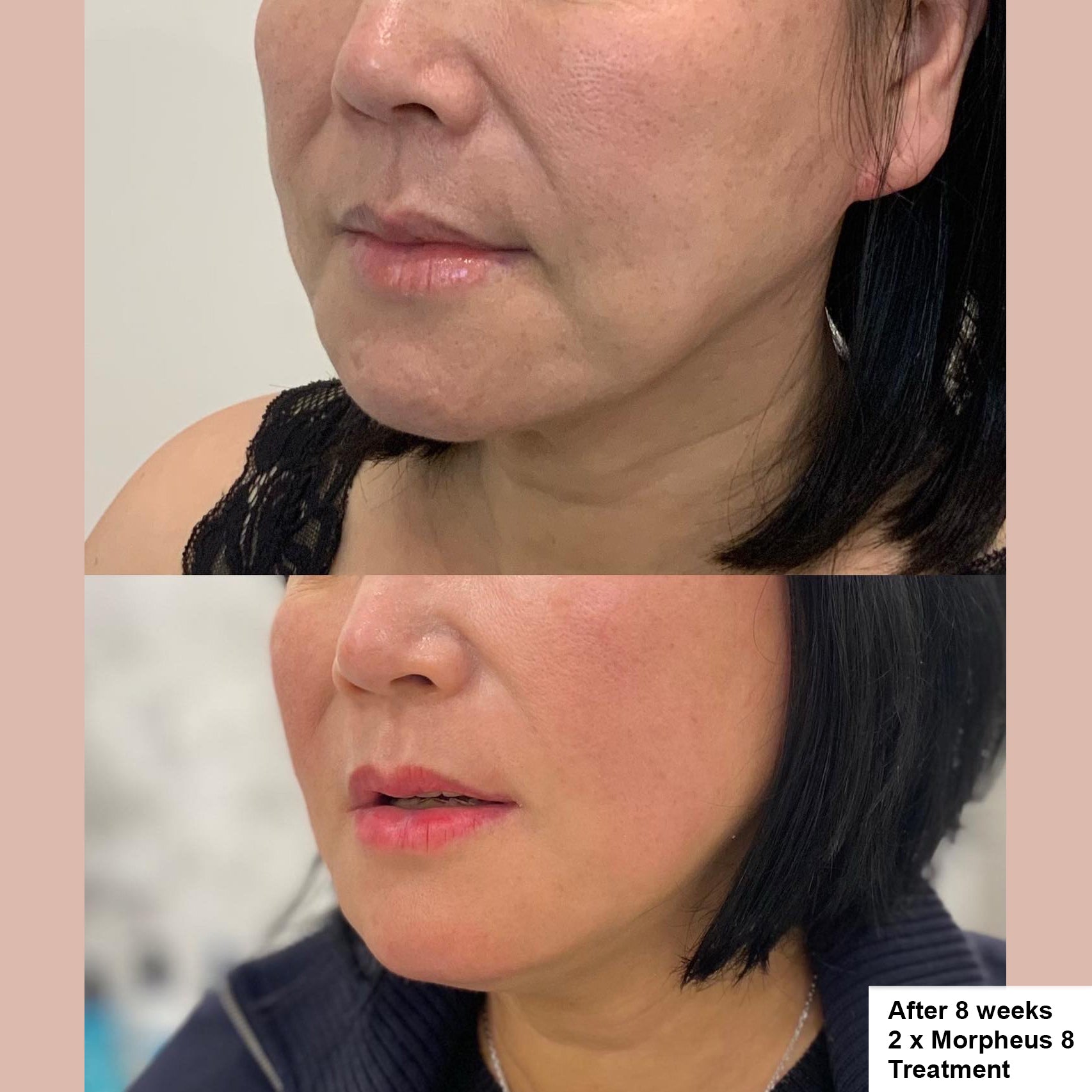 It takes 4 weeks to form new collagen and elastin. During the first 4 weeks post treatment, the skin will be remodelling deep into the subcutaneous layer of the tissue and will continue to make changes for up to 3 months. Once the remodelling has occurred, you may opt for a 2nd treatment to further your improvement. However, even though morpheus 8 can help improve the skin's condition, we are still moving forward in the ageing process but it does give you a new starting point and it can help prevent certain skin conditions from forming again and it can also slow down the ageing process.